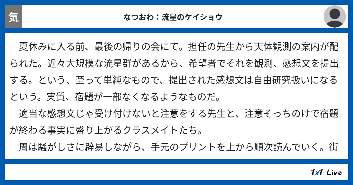 なつおわ:流星のケイショウ