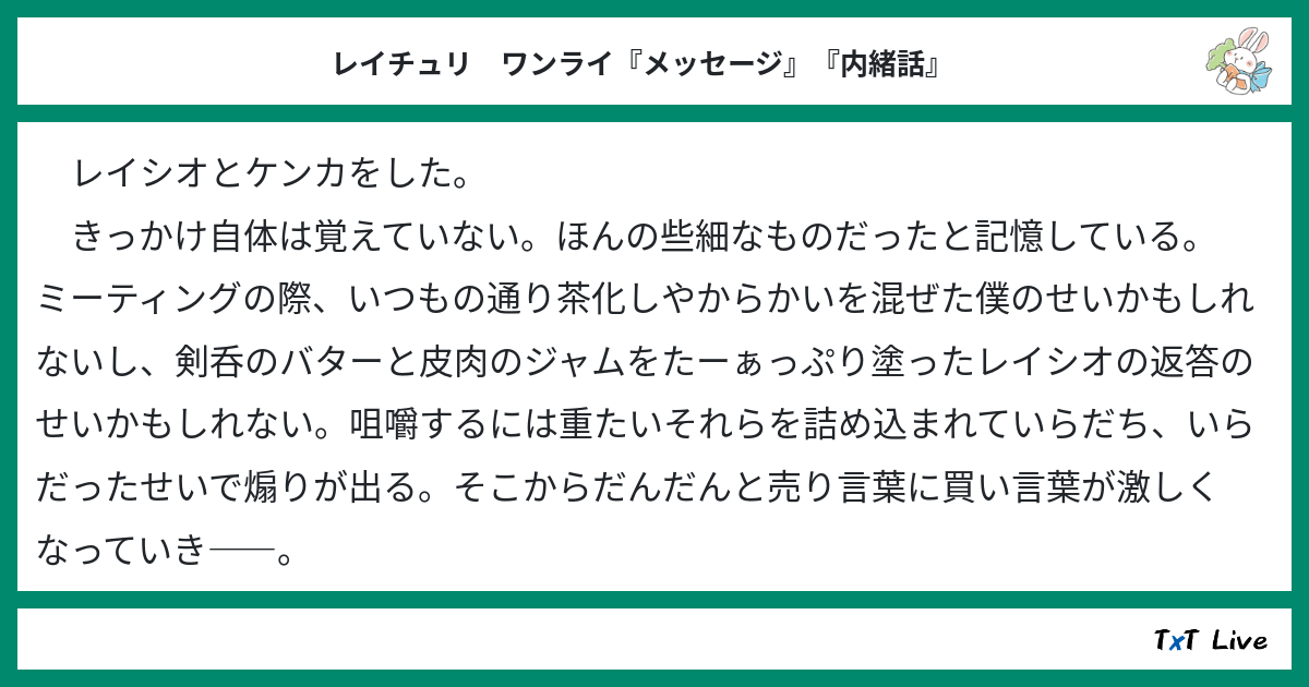 レイチュリ ワンライ『メッセージ』『内緒話』